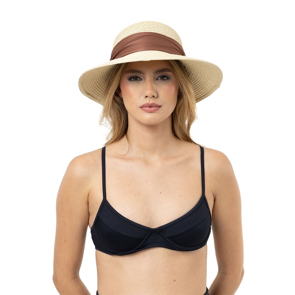 Inspirado no estilo resort chic, o Chapéu Capri Bege traduz a leveza dos tons naturais em um design elegante e versátil. A faixa em marrom profundo cria contraste e refina ainda mais o acessório, que combina com biquínis neutros, vestidos fluídos e peças em linho. Sua aba ampla protege o rosto com charme e sofisticação, tornando-o o complemento perfeito para dias de sol intensos e paisagens tropicais.