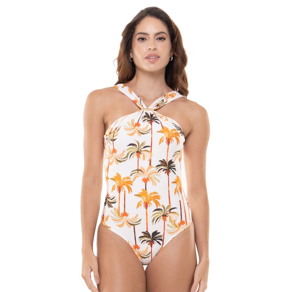 O maiô Beca da coleção "Nature" é um modelo estilo frente única, com bojo fixo e acessório dourado (banhado a ouro). Inspirado pela calma e serenidade dos coqueiros das praias brasileiras, ele apresenta uma estampa vibrante que captura a essência da vida à beira-mar.