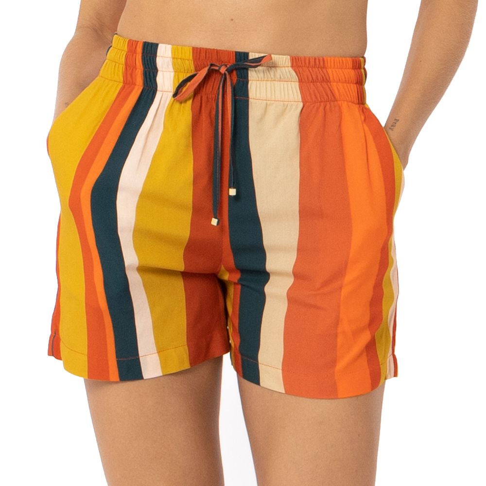 O short feminino possui cordão frontal com ponta de aço, inspirado nas falésias do Vale do Catimbau. Sua estampa reflete as cores e texturas naturais da região. Com corte moderno e versátil, o short equilibra estilo urbano com elementos da natureza, tornando-o uma escolha sofisticada e única para diversas ocasiões.