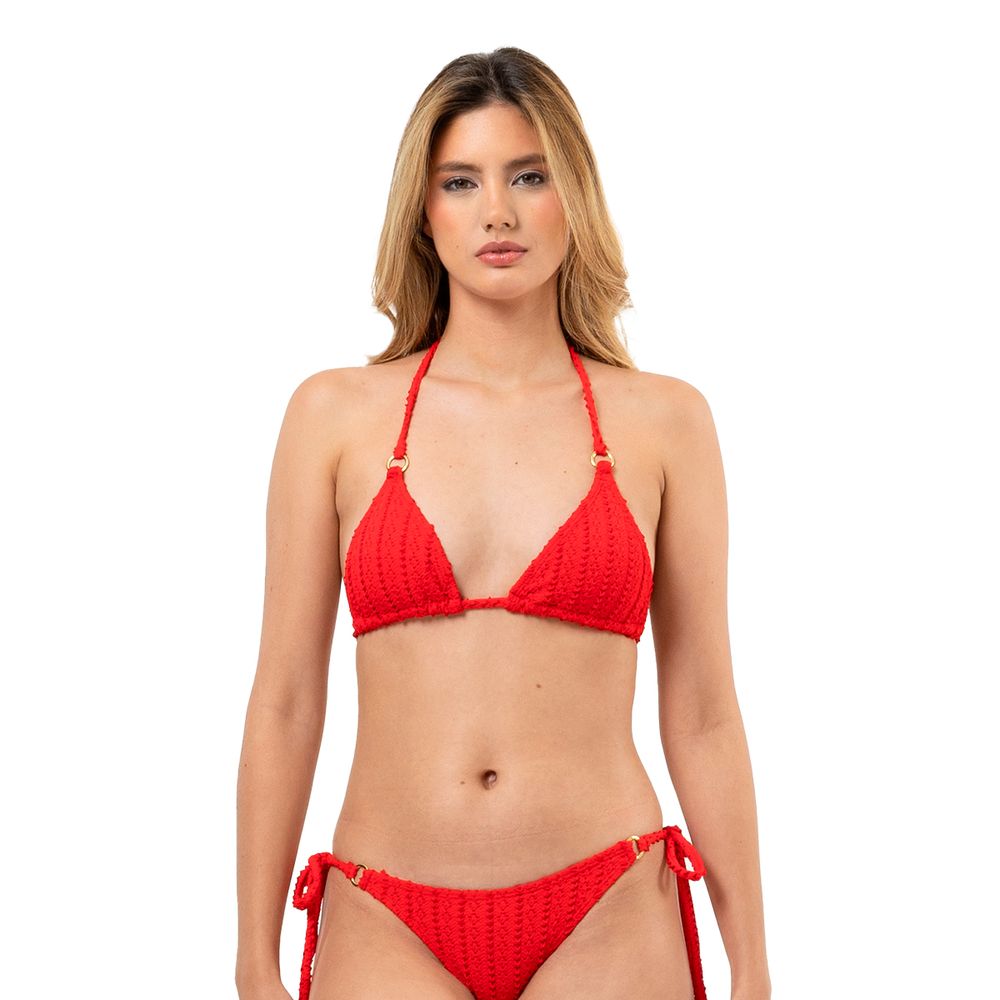 O Top Arlete apresenta modelagem cortininha clássica com amarrações ajustáveis no pescoço e nas costas, proporcionando encaixe perfeito e valorizando o busto de forma natural. A textura marcante e o acabamento refinado trazem um toque contemporâneo a uma modelagem atemporal.